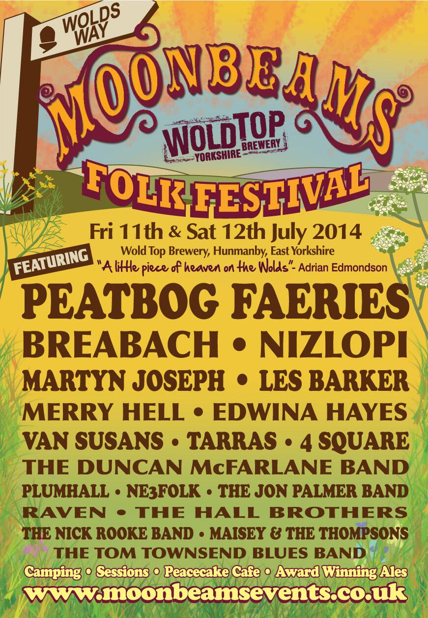 Well, I’ll tell you what I’m doing. I’m heading to the Yorkshire Wolds – a lovely part of the world – for the Moonbeams Folk Festival held at the Wold Top Brewery.